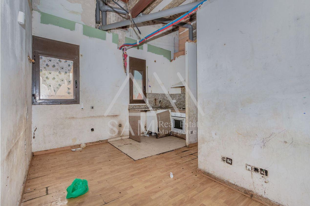 Piso a reformar completamente con una superficie de 104 m² distribuidos en salón, cocina independiente, terraza, 3 dormitorios y 2 baños.